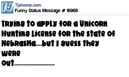 X was trying to apply for a Unicorn Hunting License for the state of Nebraska....but I guess they were out..........................