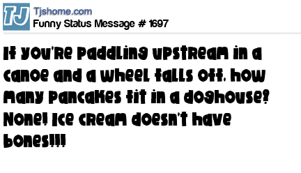 - # 22672 If your paddling upstream in a canoe and a wheel falls off, how many pancakes fit in a doghouse? None! Ice cream doesn't have bones!!