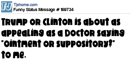 X says Trump or Clinton is about as appealing as a Doctor saying "Ointment or suppository?" to me.