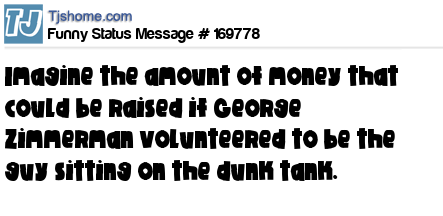 X says Imagine the amount of money that could be raised if George Zimmerman volunteered to be the guy sitting on the dunk tank.