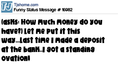 X (asks: How much money do you have?) Let me put it this way...Last time I made a deposit at the bank..I got a standing ovation!