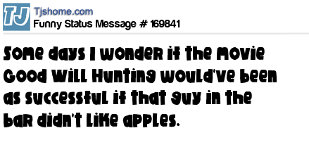 X says Some days I wonder if the movie Good Will Hunting would've been as successful if that guy in the bar didn't like apples.