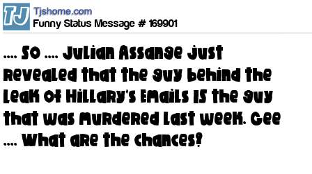 X .... So .... Julian Assange just revealed that the guy behind the Leak of Hillary's Emails IS the guy that was murdered last week. Gee .... What are the chances?