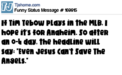 X says If Tim Tebow plays in the MLB, I hope it's for Anaheim. So after an 0-4 day, the headline will say: "Even Jesus Can't Save The Angels."