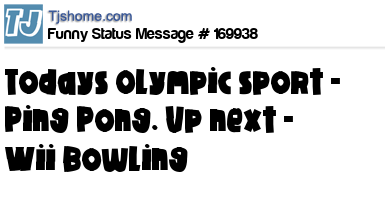 X says Todays Olympic sport - Ping Pong. Up next - Wii Bowling