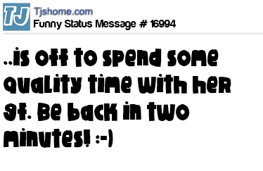 X ..is off to spend some quality time with her gf. Be back in two minutes! :-)