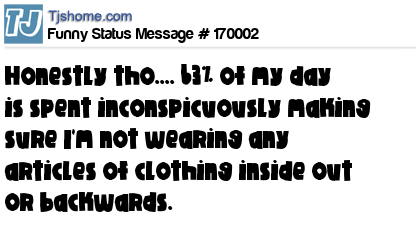 X says Honestly tho.... 63% of my day is spent inconspicuously making sure I'm not wearing any articles of clothing inside out or backwards.