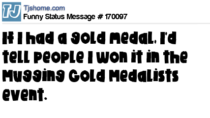 X says If I had a gold medal, I'd tell people I won it in the Mugging Gold Medalists event.