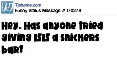 X says Hey,, Has anyone tried giving ISIS a snickers bar?