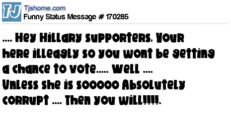 - # 170264 Hey Hillary supporters, Your here illeagly so you wont be getting a chance to vote.