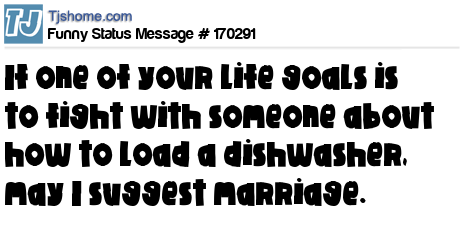 X says If one of your life goals is to fight with someone about how to load a dishwasher, may I suggest marriage.