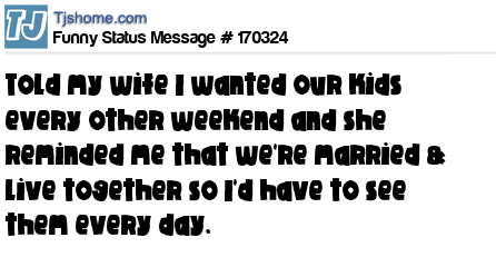 X says Told my wife I wanted our kids every other weekend and she reminded me that we're married & live together so I'd have to see them every day.