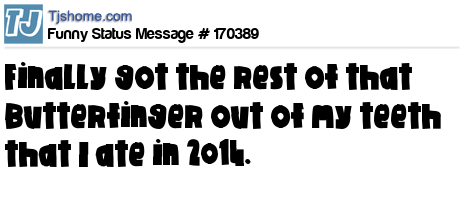 X says Finally got the rest of that Butterfinger out of my teeth that I ate in 2014.