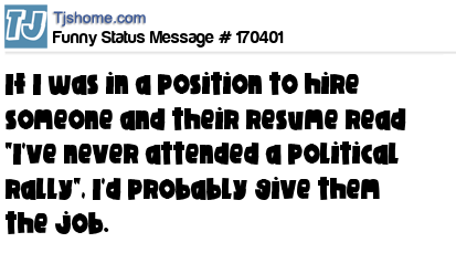 X says If I was in a position to hire someone and their resume read "I've never attended a political rally", I'd probably give them the job.