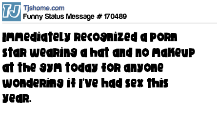 X says Immediately recognized a porn star wearing a hat and no makeup at the gym today for anyone wondering if I've had sex this year.
