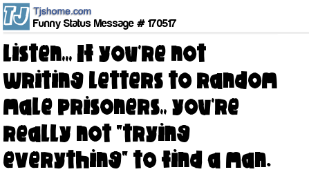X says Listen,,, If you're not writing letters to random male prisoners,, you're really not "trying everything" to find a man.