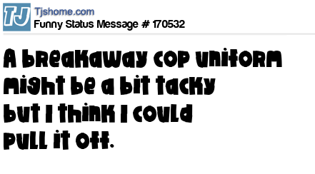 X says A breakaway cop uniform might be a bit tacky but I think I could pull it off.