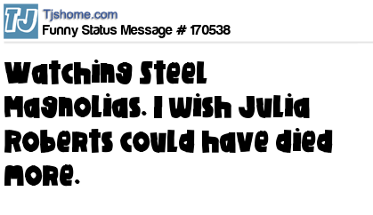 X says Watching Steel Magnolias. I wish Julia Roberts could have died more.