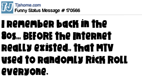 X says I remember back in the 80s,,, BEFORE the Internet really existed,, that MTV used to randomly Rick Roll everyone.