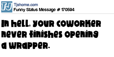X says In hell, your coworker never finishes opening a wrapper.