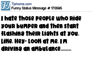 X says I hate those people who ride your bumper and then start flashing their lights at you. Like, Hey- look at me, I’m driving an ambulance.........