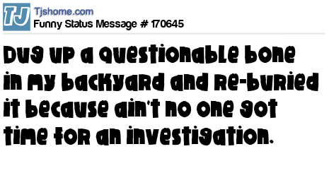 X says Dug up a questionable bone in my backyard and re-buried it because ain't no one got time for an investigation.
