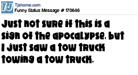 X says Just not sure if this is a sign of the apocalypse, but I just saw a tow truck towing a tow truck.