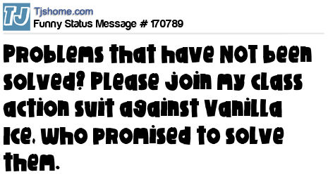 X says Problems that have NOT been solved? Please join my class action suit against Vanilla Ice, who promised to solve them.