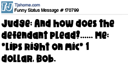 X says Judge: And how does the defendant plead?...... Me: *lips right on mic* 1 dollar, Bob.