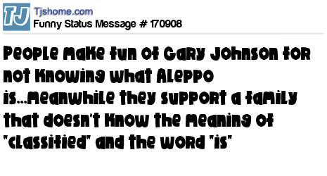 X says People make fun of Gary Johnson for not knowing what Aleppo is...meanwhile they support a family that doesn't know the meaning of "classified" and the word "is"