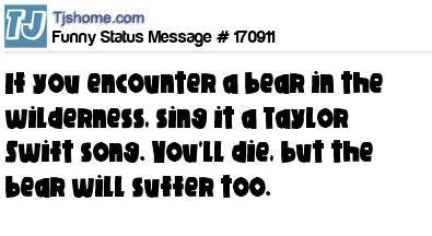 X says If you encounter a bear in the wilderness, sing it a Taylor Swift song. You'll die, but the bear will suffer too.