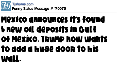X says Mexico announces it's found 6 new oil deposits in Gulf of Mexico. Trump now wants to add a huge door to his wall.
