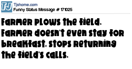 X Farmer plows the field. Farmer doesn't even stay for breakfast, stops returning the field's calls.