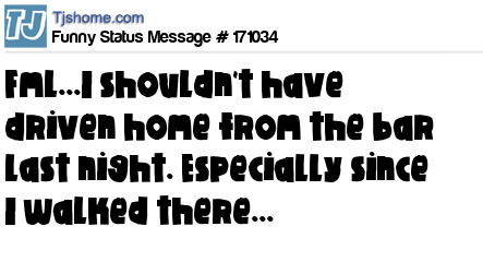 X says fml...I shouldn't have driven home from the bar last night. Especially since I walked there...