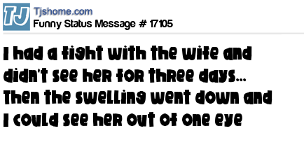 X I had a fight with the wife and didn't see her for three days... Then the swelling went down and I could see her out of one eye