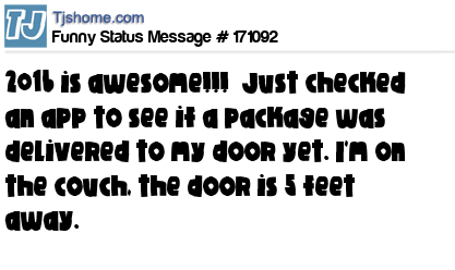X says 2016 is awesome!!! Just checked an app to see if a package was delivered to my door yet. I'm on the couch, the door is 5 feet away.