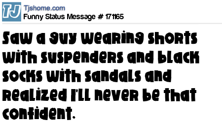 X says Saw a guy wearing shorts with suspenders and black socks with sandals and realized I'll never be that confident.