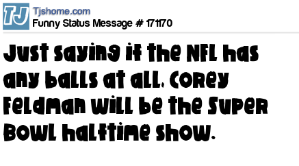 X says Just saying if the NFL has any balls at all, Corey Feldman will be the Super Bowl halftime show.