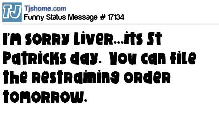 X is I'm sorry liver...its St Patricks day. You can file the restraining order tomorrow.