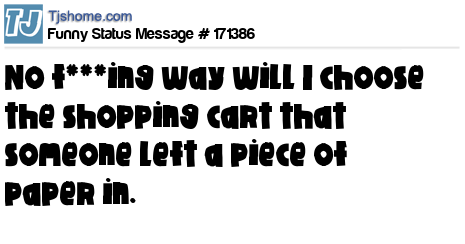 X says No f***ing way will I choose the shopping cart that someone left a piece of paper in.