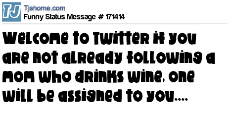 X says Welcome to Twitter if you are not already following a mom who drinks wine, one will be assigned to you....