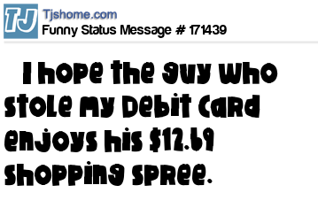 X says I hope the guy who stole my Debit Card enjoys his $12.69 shopping spree.