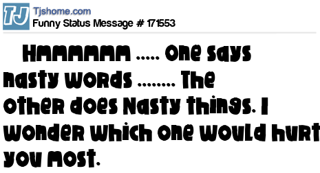 X says Hmmmmmm ..... One says nasty words ........ The other does Nasty things. I wonder which one would hurt you most.