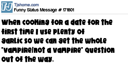 X says When cooking for a date for the first time I use plenty of garlic so we can get the whole "vampire/not a vampire" question out of the way.