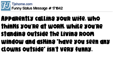 X says Apparently calling your wife, who thinks you're at work, while you're standing outside the living room window and asking "have you seen any clowns outside" isn't very funny.