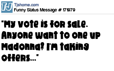 X "My vote is for sale. Anyone want to one up Madonna? I'm taking offers..."