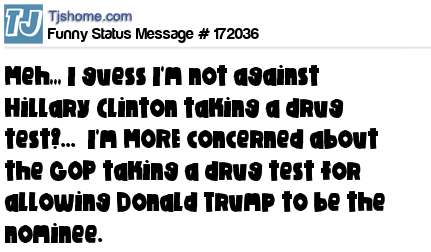 X says Meh,,, I guess I'm not against Hillary Clinton taking a drug test?... I'm MORE concerned about the GOP taking a drug test for allowing Donald Trump to be the nominee.