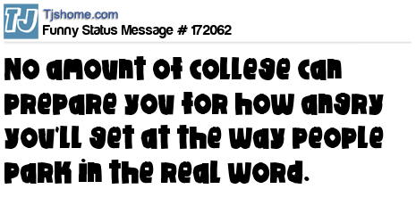X says No amount of college can prepare you for how angry you'll get at the way people park in the real word.