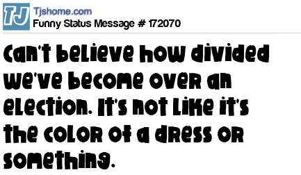X says Can't believe how divided we've become over an election. It's not like it's the color of a dress or something.