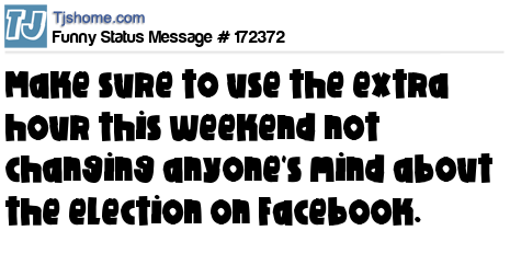 X says Make sure to use the extra hour this weekend not changing anyone's mind about the election on Facebook.
